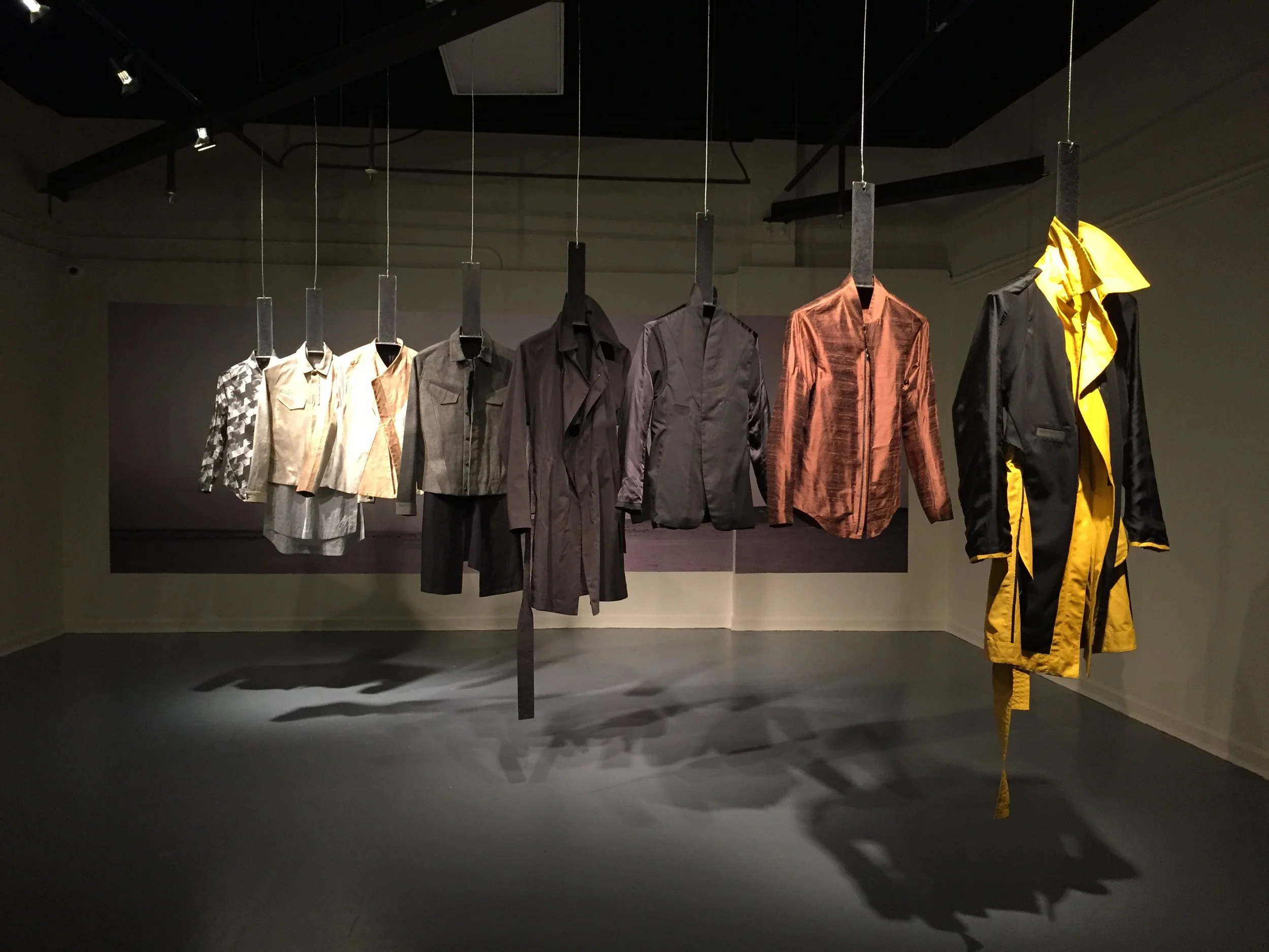 Abdul Abasi and Greg Rosborough are two affable young designers who take pride in their craftsmanship and design process. Talking to the New York-based design duo was enjoyable and illuminating.[2] After having worked in large fashion corporations, they founded Abasi Rosborough in New York City in 2013. The two were looking for a more creative avenue to express their views on clothing, all while using the skills theyacquired at the Fashion Institute of Technology, where theymet as classmates. Abasi and Rosborough analyze cultural production and find inspiration in sartorial traditions to produce new fashions. Their practice crosses lines between fashion and art. This exhibition focuses on one of their recent collections that connected both disciplines.