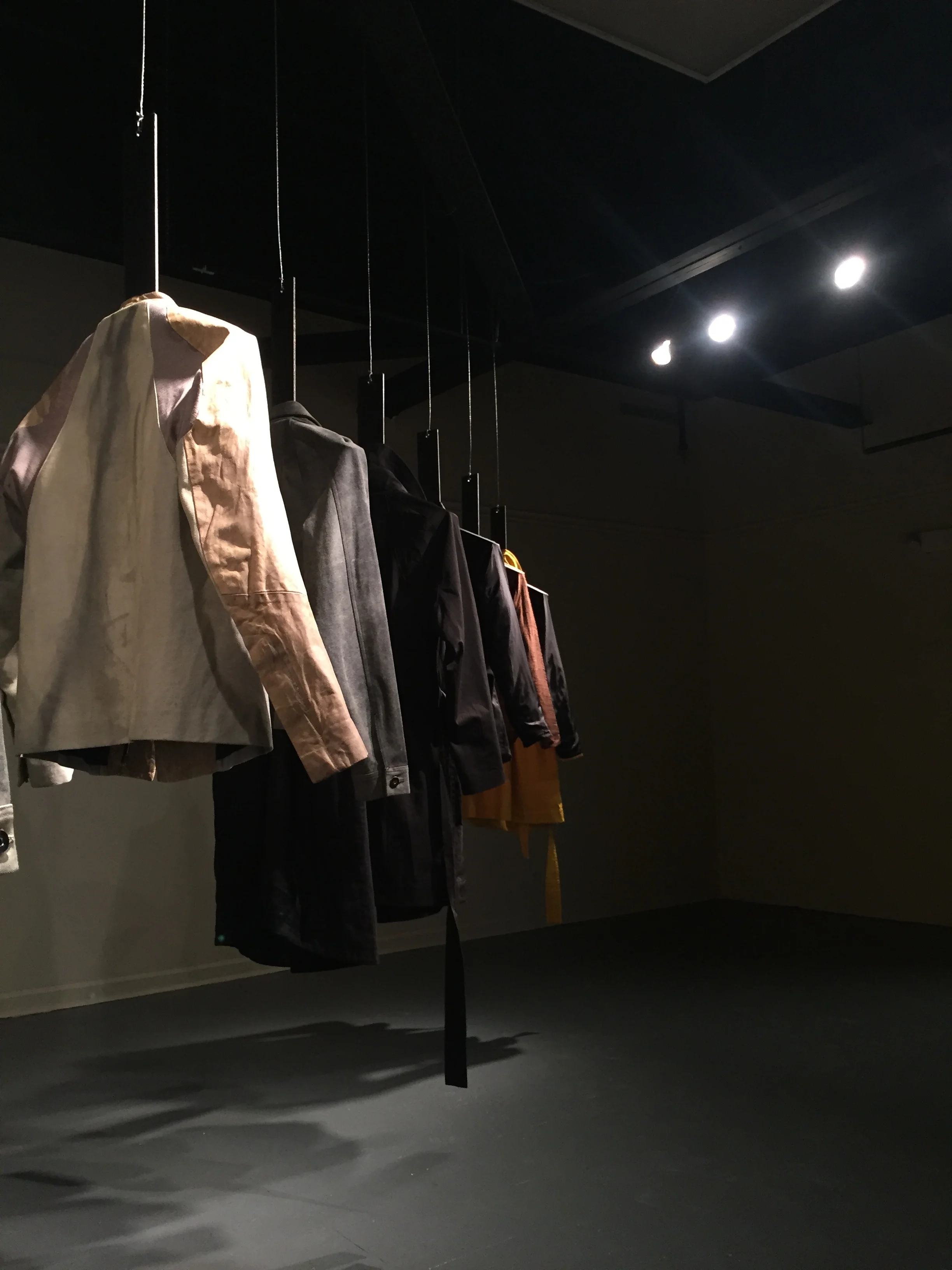 Abasi Rosborough’s Monolith collection draws upon Richard Serra’s recent site-specific work East-West/West-East, an instance where art and fashion intersect. This exhibition centers around creative processes and the ongoing dialogue between fashion and art. However, while Abasi Rosborough’s practice has poetic elements, the duo view design as a problem-solving discipline. It is here where they diverge from the paths of art. They create garments that they consider necessary, that respond to a need in the way people relate to clothes (ie. mobility) or the materials used to make them (ie. deadstock fabrics ). “Everything we do involves process,” stated Abasi. “We use art but we use the anthropology of mankind starting from [...] the first garments, what function they had and try to apply them to a modern context.” Design, then, is dislocated from a set space and time, with a vocation - inserted in modernity - of advancing the practice of fashion.