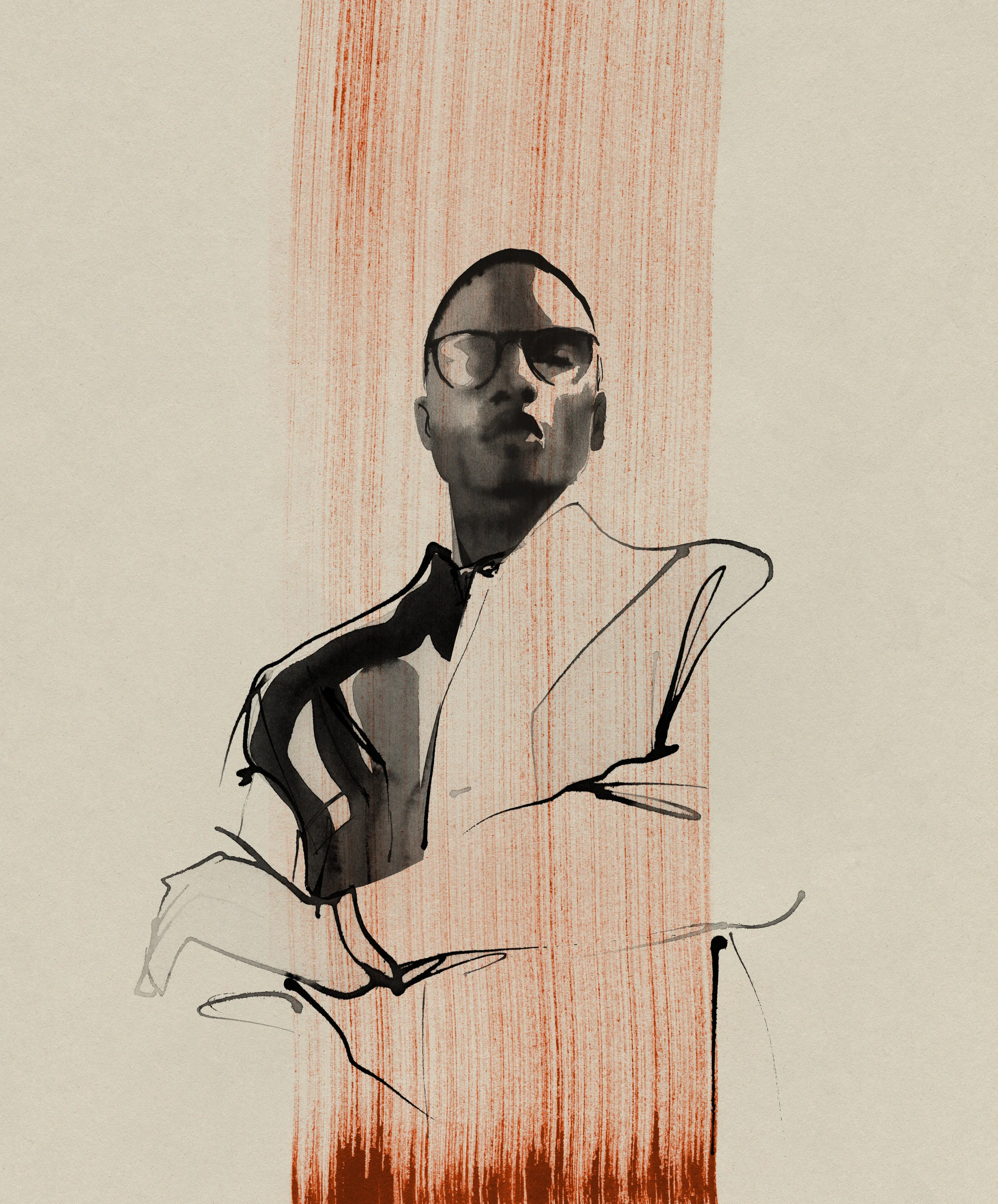 Abasi Rosborough’s work is deeply inspired by sartorial history and art. The classic men's two-piece suit was devised in mid-19th century Europe. It is now a global staple of menswear and has suffered minimal modifications since its inception. Abasi and Rosborough grappled with the idea that a garment has existed for over a century and yet it can be very uncomfortable to wear. Greg Rosborough wondered, “How strange is it that we live in the 21st century and no designer has meaningfully designed a suit jacket that respects your body’s natural anatomy and range of motion?” So they proposed changes to the basic pattern of a suit jacket by adding a gusset in a knit fabric that allows more mobility for the wearer. That newly designed jacket is one of the staples of the brand. It is a garment that they manufacture since 2013.